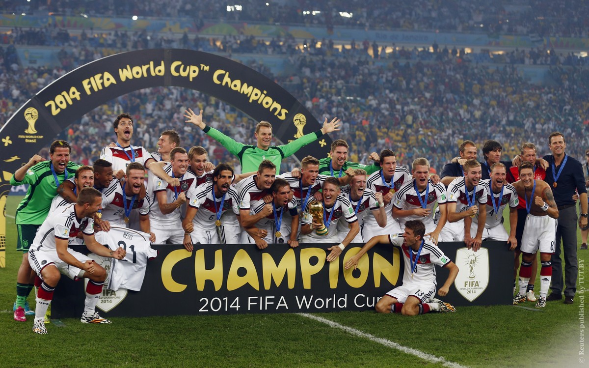 Сборная Германии в четвертый раз стала чемпионом мира по футболу. В драматичном финальном поединке на знаменитом стадионе \»Маракана\» в Рио-де-Жанейро немцы взяли верх над Аргентиной и стали первой европейской командой, которая сумела выиграть первенство планеты, проводившееся в Западном полушарии.