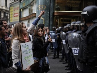 Столкновения с полицией начались, когда небольшая группа демонстрантов попыталась прорвать полицейское оцепление. Демонстрация на площади Нептуна стартовала в первой половине дня, и к вечеру число участников акции удвоилось. По оценкам депутатов, на 20:00 по местному времени (22:00 по московскому) у парламента митинговали около 6 тысяч человек. По некоторым данным, демонстрантов свозили из испанский регионов на автобусах.