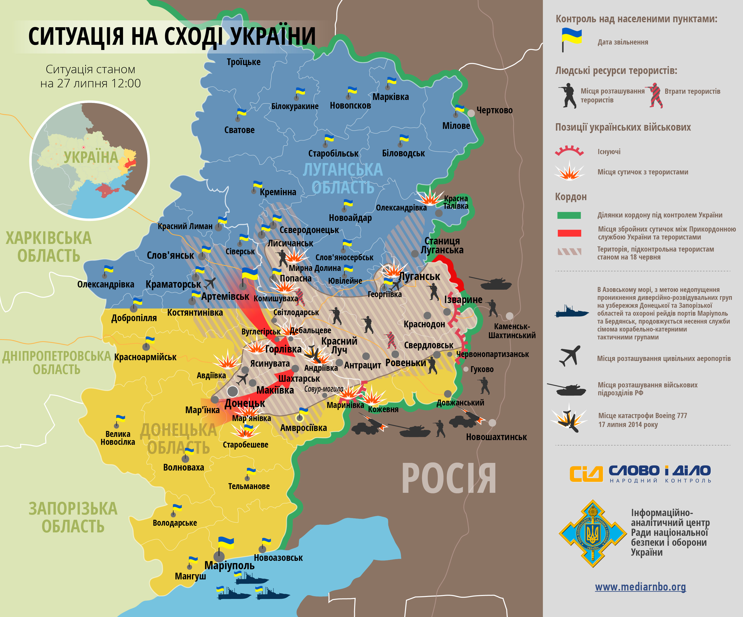 Ситуация в зоне антитеррористической операции на 27 июля 2014 года по данным Рады национальной безопасности и обороны Украины.